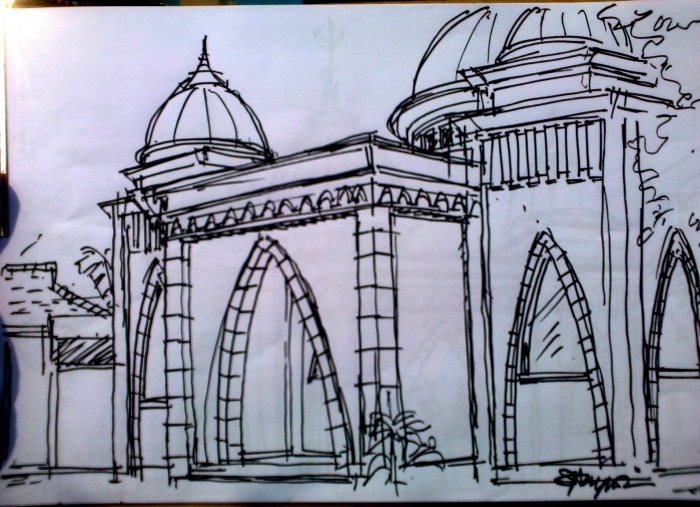 Gambar Sketsa Mesjid Al Munawar Rongsokan Mobil Dan Sapi Merumput